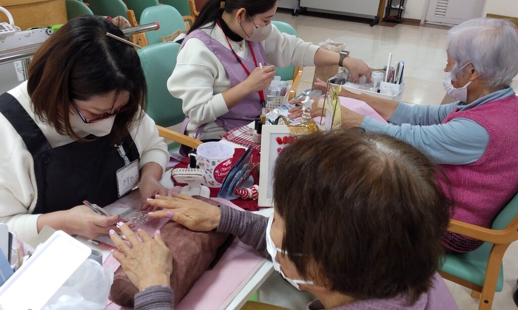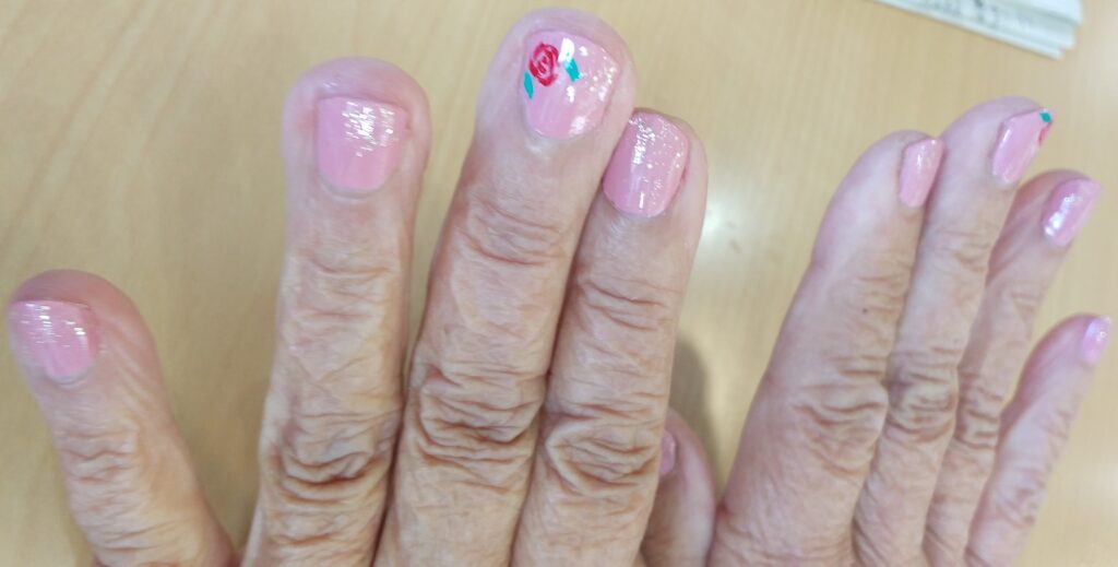 デイサービスに、ネイルアートのボランティアさんが来てくださいました。