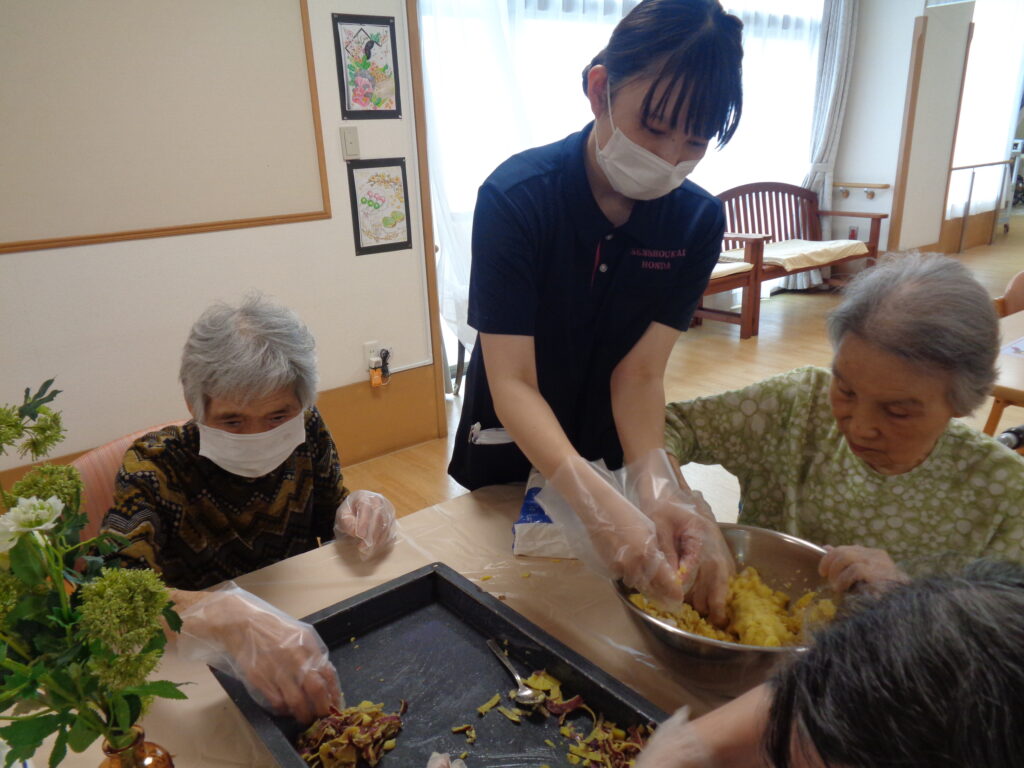 みんなで食べやすい大きさに成型してオーブンで焼いたら完成✨