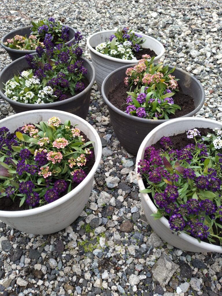 鉢植えで(ストック)と(アリッサム)を植えました🌞