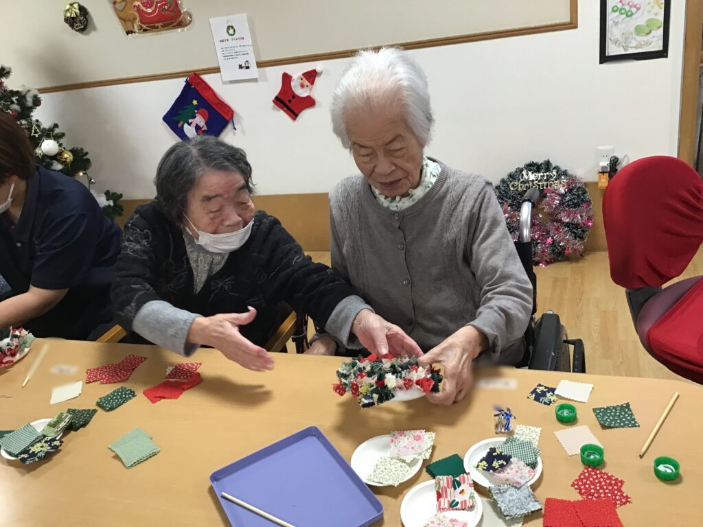 今月の行事はクリスマスリース作りです🎄