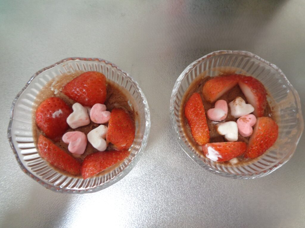 ご利用者様のご協力いただき、牛乳とマシュマロ、チョコレートを混ぜた上に